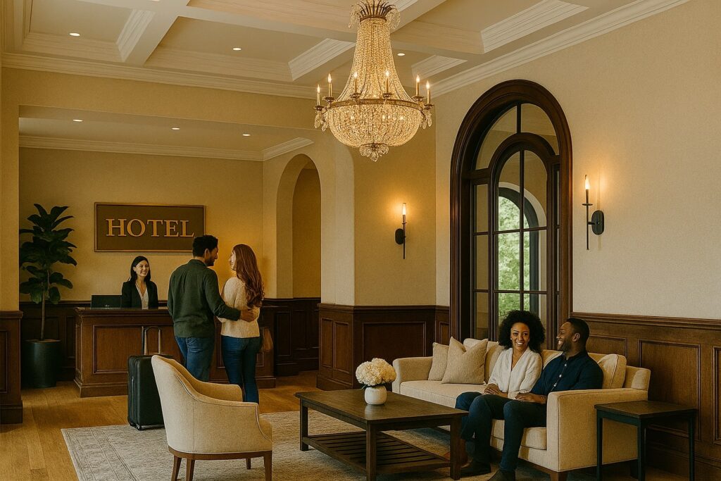 Hotel Rezeption mit Gästen